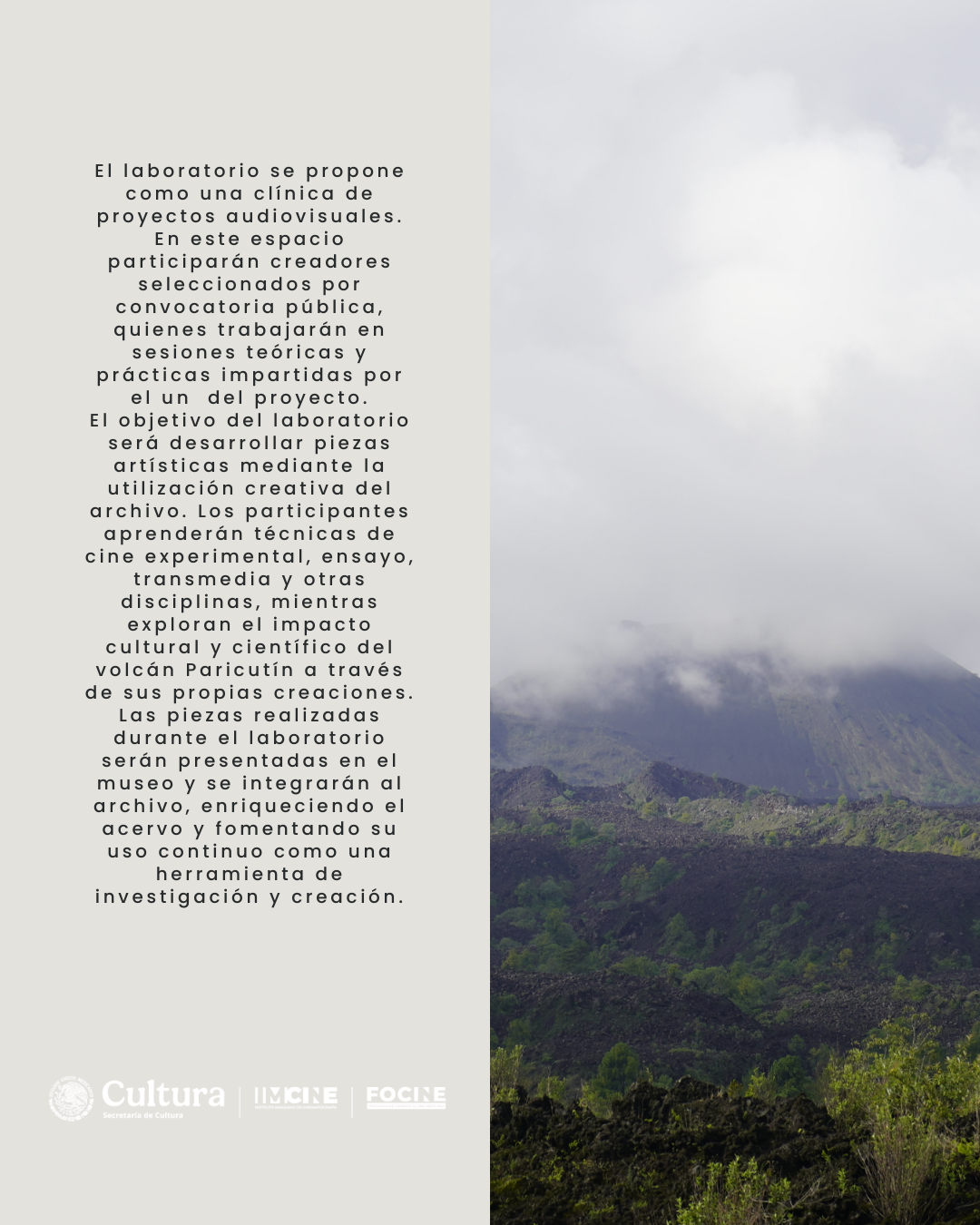El Archivo Paricutín convoca a creadorxs, artistas, investigadorxs, y agentes culturales a participar en el Laboratorio de exploración audiovisual, una iniciativa enfocada en preservar, concentrar y activar materiales audiovisuales y documentales sobre el desarrollo del volcán Paricutín desde su origen hasta la actualidad, promoviendo su acceso público y su utilización en la investigación y la creación artística.